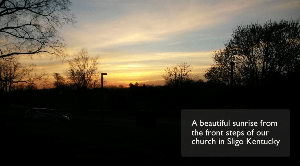 As the sun rises to touch our front doors each morning at Sligo Baptist Church we can trace our roots back to the turn of the 19th century when our first pastor came over the mountains of Virginia to settle in Kentucky. Kentucky had been a state for less than 10 years when the first congregations began meeting.